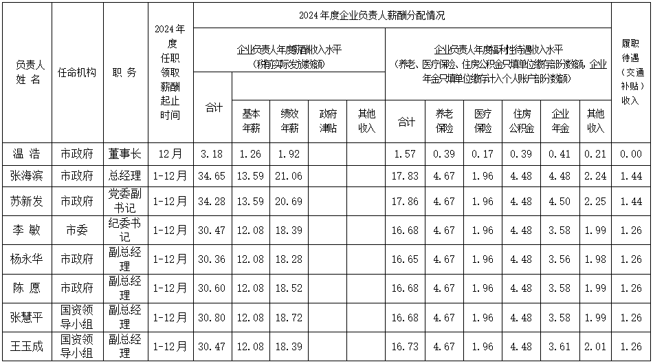 2024年度鄂爾多斯市直屬國(guó)有企業(yè)負(fù)責(zé)人薪酬信息公開披露表