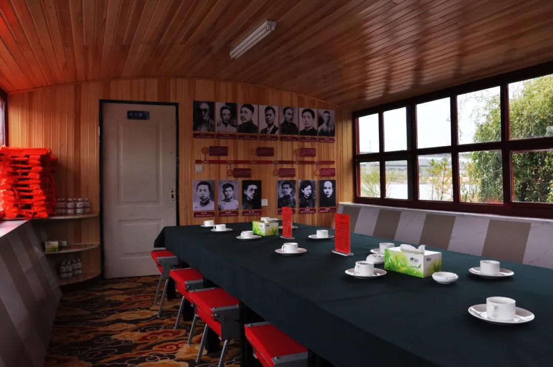 該船由水投集團(tuán)自行設(shè)計(jì),全程由公司職工匠心打造,除鐵皮等必要的材料為市場(chǎng)采購(gòu)?fù)?,船幫和船底是由廢舊的泵船連接改造而成,連接鋼管、甲板、內(nèi)置桌椅等物件均為廢舊物品回收利用。船艙內(nèi)進(jìn)行了簡(jiǎn)單布置,再現(xiàn)了中共一大南湖會(huì)議的歷史場(chǎng)景 “開天辟地、敢為人先的首創(chuàng)精神,堅(jiān)定理想、百折不撓的奮斗精神,立黨為公、忠誠(chéng)為民的奉獻(xiàn)精神”,這是“紅船精神”的主要內(nèi)涵,“紅船精神”是中國(guó)革命精神之源,昭示著中國(guó)共產(chǎn)黨人的初心。水投集團(tuán)傾力打造的“三崇號(hào)”將作為國(guó)資系統(tǒng)及市、旗黨政機(jī)關(guān)、企事業(yè)單位開展紅色革命教育、踐行新時(shí)代“紅船精神”的教育實(shí)踐載體,引導(dǎo)黨員干部群眾不忘來(lái)時(shí)路,不忘革命時(shí)代的艱辛歲月,不忘建設(shè)初期的曲折坎坷,牢記初心使命,矢志愛國(guó)奮斗。