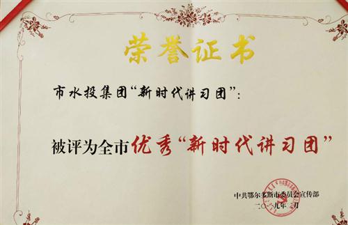 近日,市水投集團“新時代講習團”喜獲全市優(yōu)秀“新時代講習團”榮譽稱號。
